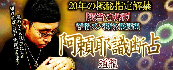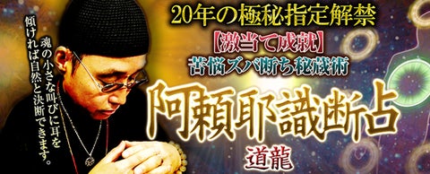 - 「うらなえる本格鑑定」サービスでは、道龍先生が新たに編み出した「阿頼耶識断占」による救済鑑定を提供