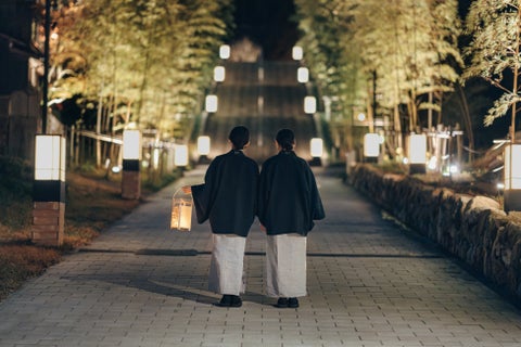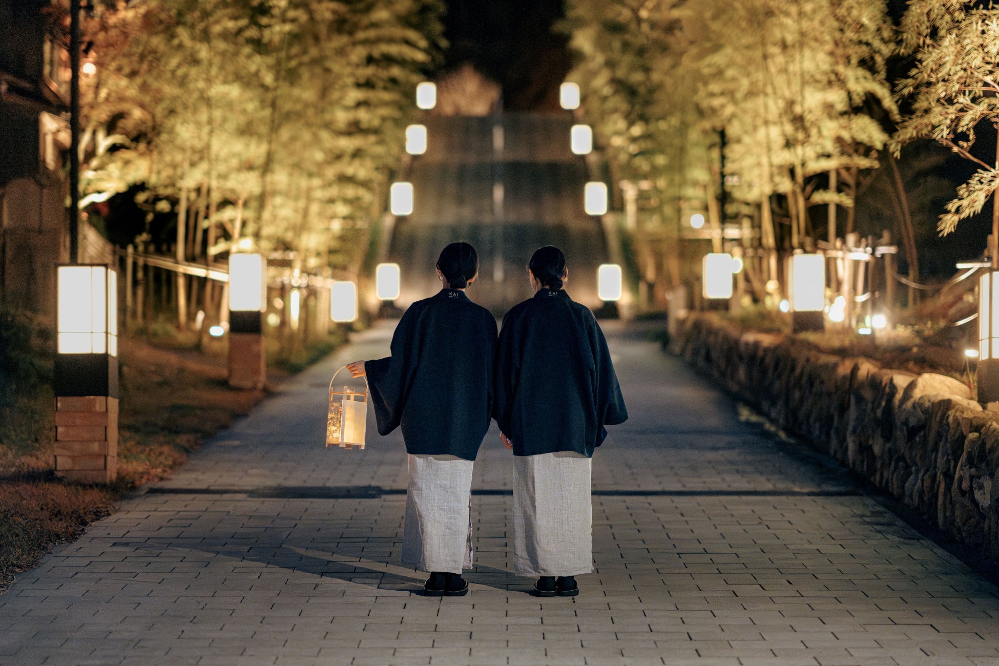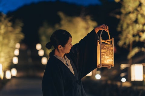 オリジナルの行燈を手に持ち、幻想的な温泉街を散策することができます。