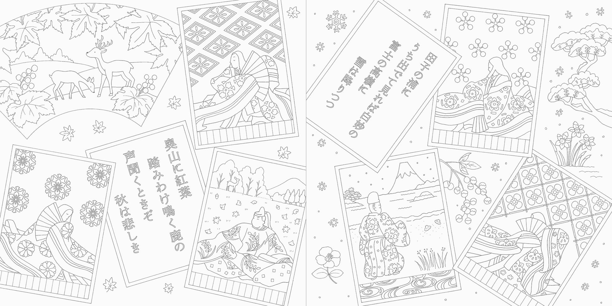 最新作では、日本古来の雅な和歌や物語とともに、四季折々の花や風景、伝統文様を楽しむことができます。