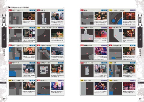 さらに、カラオケの楽曲譜面やキャバ嬢との親密度アップの方法、闘技場やポケットサーキットの攻略指南など、多彩なプレイスポットに関する情報も掲載されています。