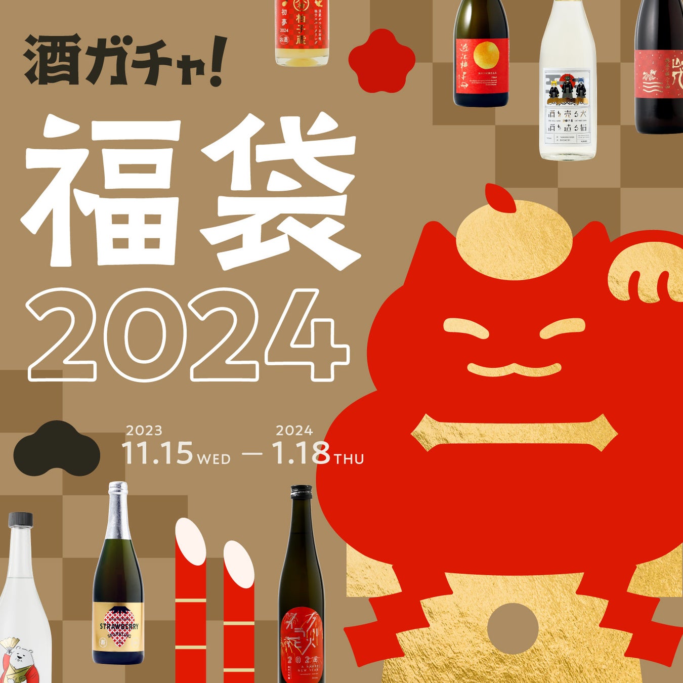 - 「酒ガチャ福袋 2024」は期間限定の福袋で、年末年始の祝いの席を盛り上げるお酒が登場します。