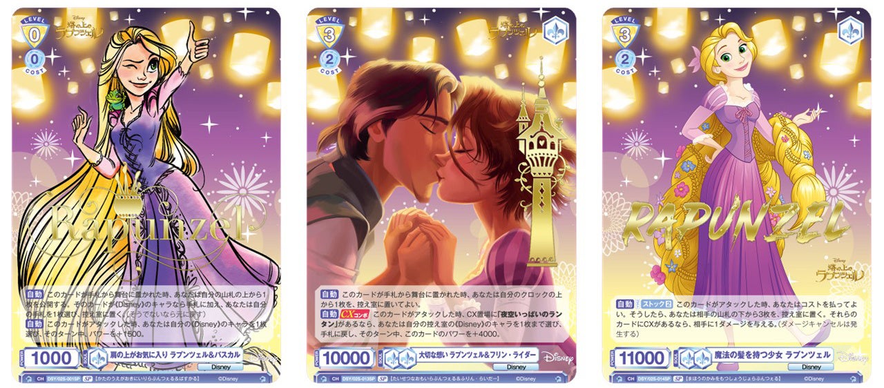 - 2. スタートデッキ『塔の上のラプンツェル』にはカード50枚や箔押しコレクションカード、スタートプラスパックが含まれる。