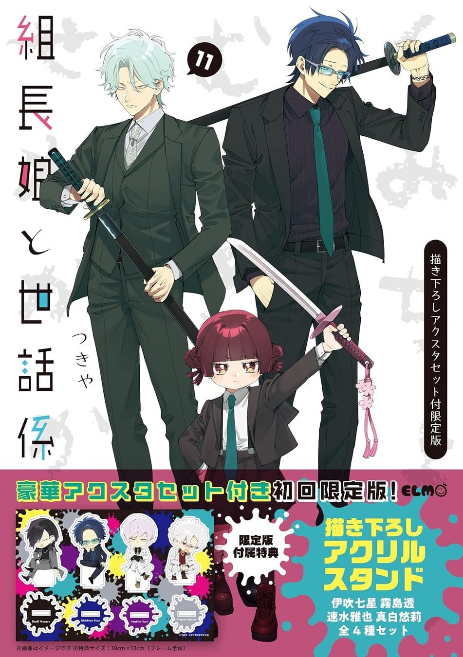 マイクロマガジン社は、12月11日にコミックELMO『組長娘と世話係』最新11巻と描き下ろしアクスタセット付限定版を発売します。