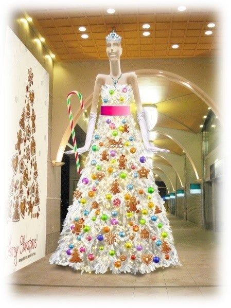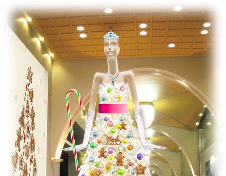 - ジンジャーブレッドマンクッキーをイルミネーションのドレスに取り入れたカラフルな装飾