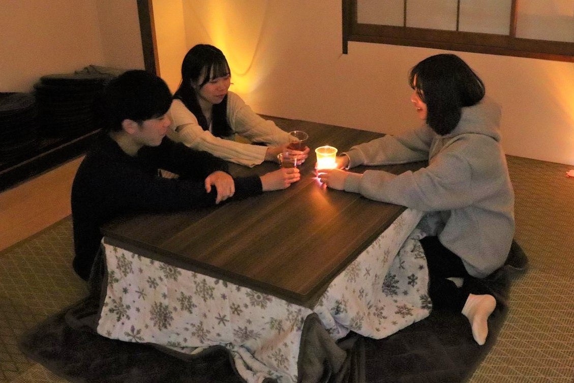 - こたつ席やテント席でイルミネーションやキャンプファイヤーを楽しむことができる