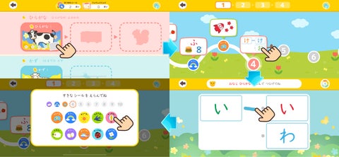 アプリには、もじ・かず・ちえの3つのカテゴリーからなる様々なワーク(問題)があり、なぞったり書いたり数えたり見つけたりすることで学ぶことができます。
