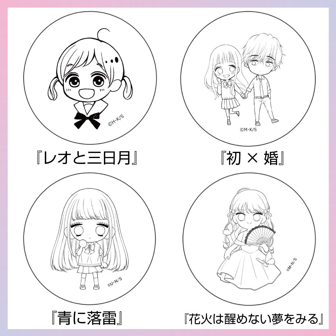 ワコムブースでは、りぼんコラボ缶バッジイベントを実施します。集英社の少女まんが雑誌『りぼん』で連載中の人気作品の線画に、「Wacom One 液晶ペンタブレット 13」で自由に色を塗った自分だけのオリジナル作品を缶バッジにしてプレゼントします。線画は4種類ご用意しています。憧れのマンガ家の先生の作品を1つ選んで、デジタル塗り絵を体験していただけます。