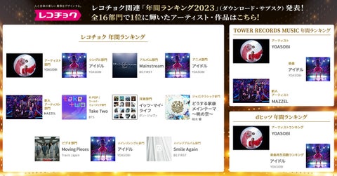 - YOASOBIが「レコチョク年間ランキング2023」で8冠を獲得