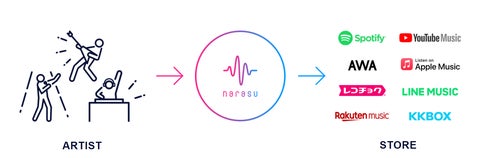 - 「narasu(ナラス)」は音楽配信ストアへの楽曲登録を代行するサービス