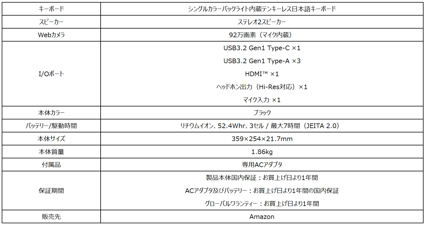 ノートPC本体は薄さ21.7mm・軽さ1.86kgの薄型・軽量デザインとなっており、室内の移動やバックパックへ収納して外出先へ気軽に持運ぶことができます。