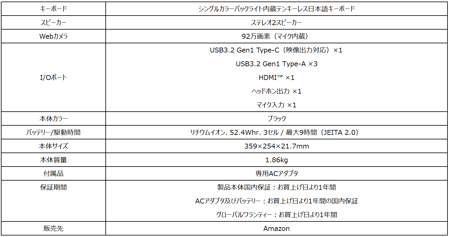 - GeForce RTX™ 4060 Laptop GPU、Core™ i7-12650H、インテル® Arc™ グラフィックス、GeForce RTX™ 3060 Laptop GPU