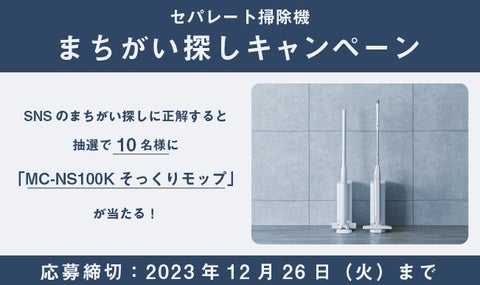 正解すると抽選で10名に「MC-NS100Kそっくりモップ」がプレゼントされます。