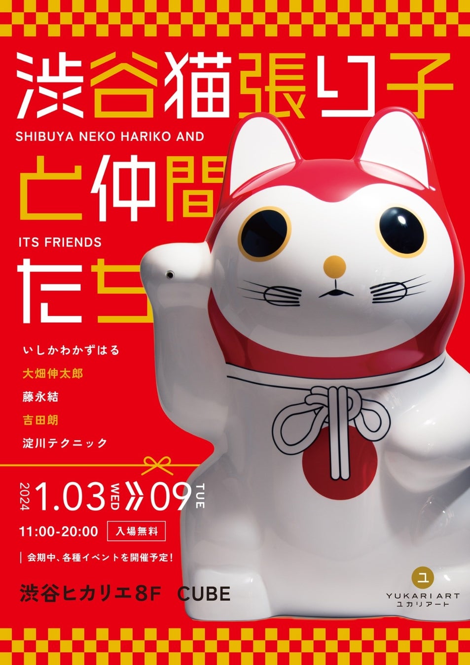 ユカリアートは、いしかわかずはる、大畑伸太郎、藤永結、吉田朗、淀川テクニックの5人の現代美術家によるグループ展「渋谷猫張り子と仲間たち」を開催します。