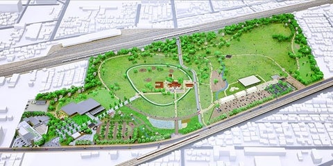 安満遺跡公園は緑豊かな公園で、ランドセルを背負ったままナビゲーターと一緒に散歩を楽しむことができます。
