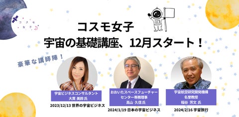 全12回の講座は2023年12月から2024年11月まで行われ、宇宙ビジネスや人工衛星、宇宙エンタメなどのテーマが取り上げられます。