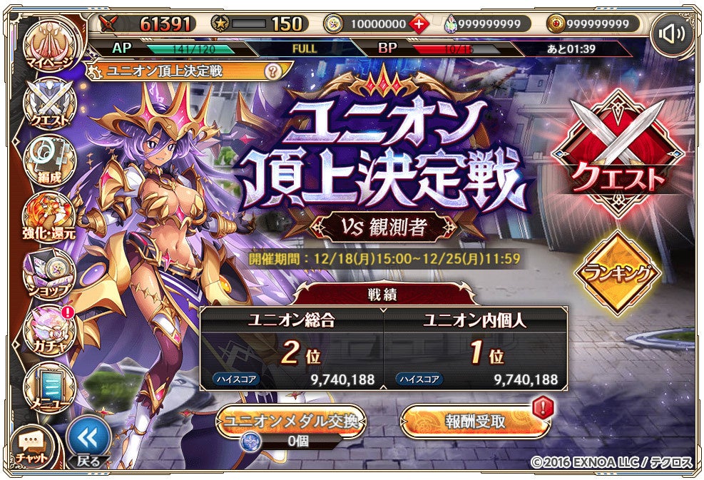 - 新イベント「ユニオン頂上決定戦」、闇属性ボスとのバトル