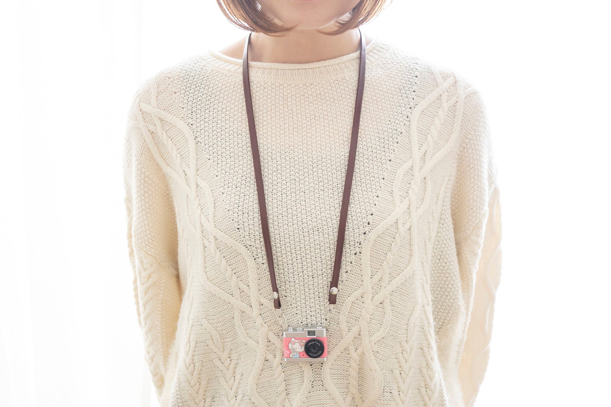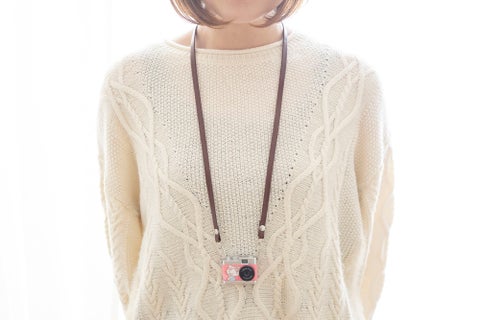 クラシックカメラ風の可愛いデザインで、持ち運びに便利なサイズ感と付属のネックストラップが魅力です。