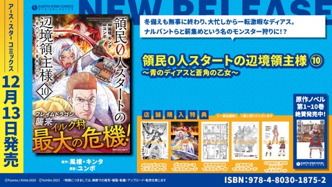- 株式会社アーススター エンターテイメントのコミックレーベル【アーススター コミックス】から、人気作品『領民0人スタートの辺境領主様 ~青のディアスと蒼角の乙女~』の第10巻が12月13日に発売されます。