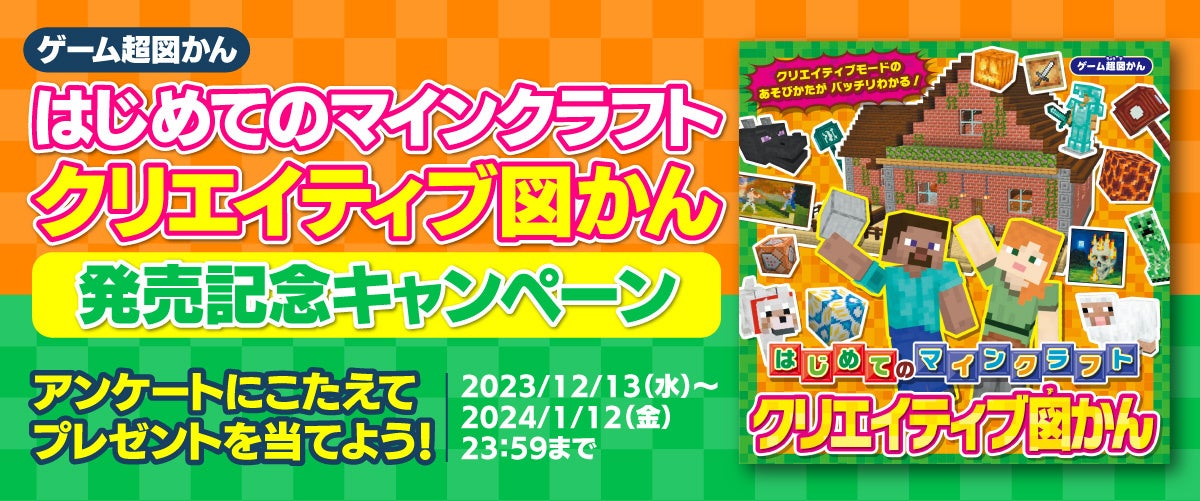 さらに、KADOKAWAでは『ゲーム超図かん はじめてのマインクラフト クリエイティブ図かん』の刊行を記念してプレゼントキャンペーンを実施しており、アンケートに答えた方の中から抽選で「ゲーム超図かん はじめてのマインクラフト」シリーズ3冊セットが当たります。