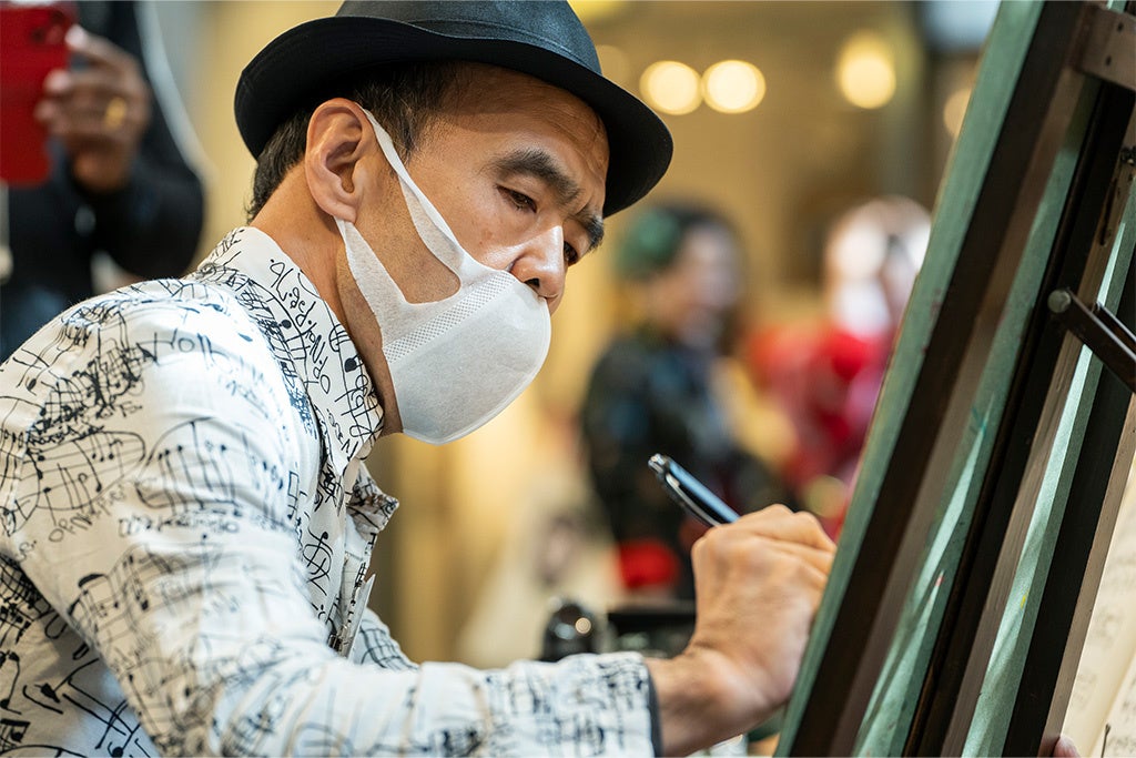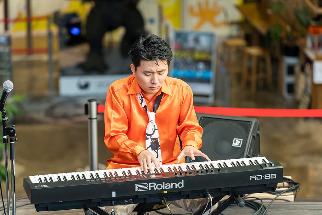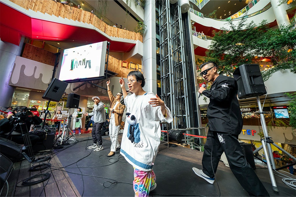 また、アトリウムエリアではアーティストによるライブペインティングや楽器体験ブースも設置され、参加者は楽しんでいました。