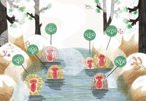 - 「おんせん ぽかぽか」は、長野県の地獄谷温泉で暮らすさるの家族を描いた絵本
