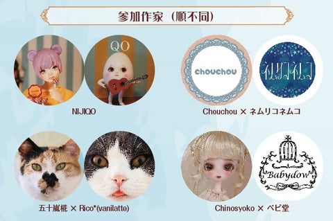 - 展示会では豪華なイラストレーターとドール作家によるワンオフドールの展示抽選販売も
