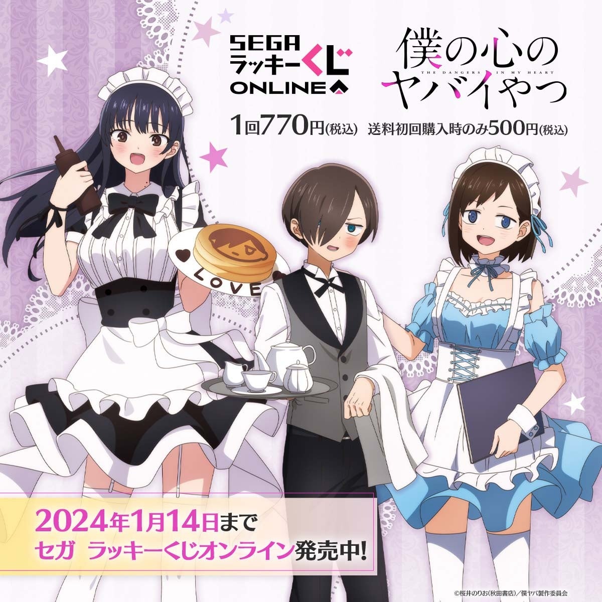 セガ ラッキーくじオンライン「僕の心のヤバイやつ」でメイドと執事の描き下ろしイラストが尊いアイテムを当てよう!