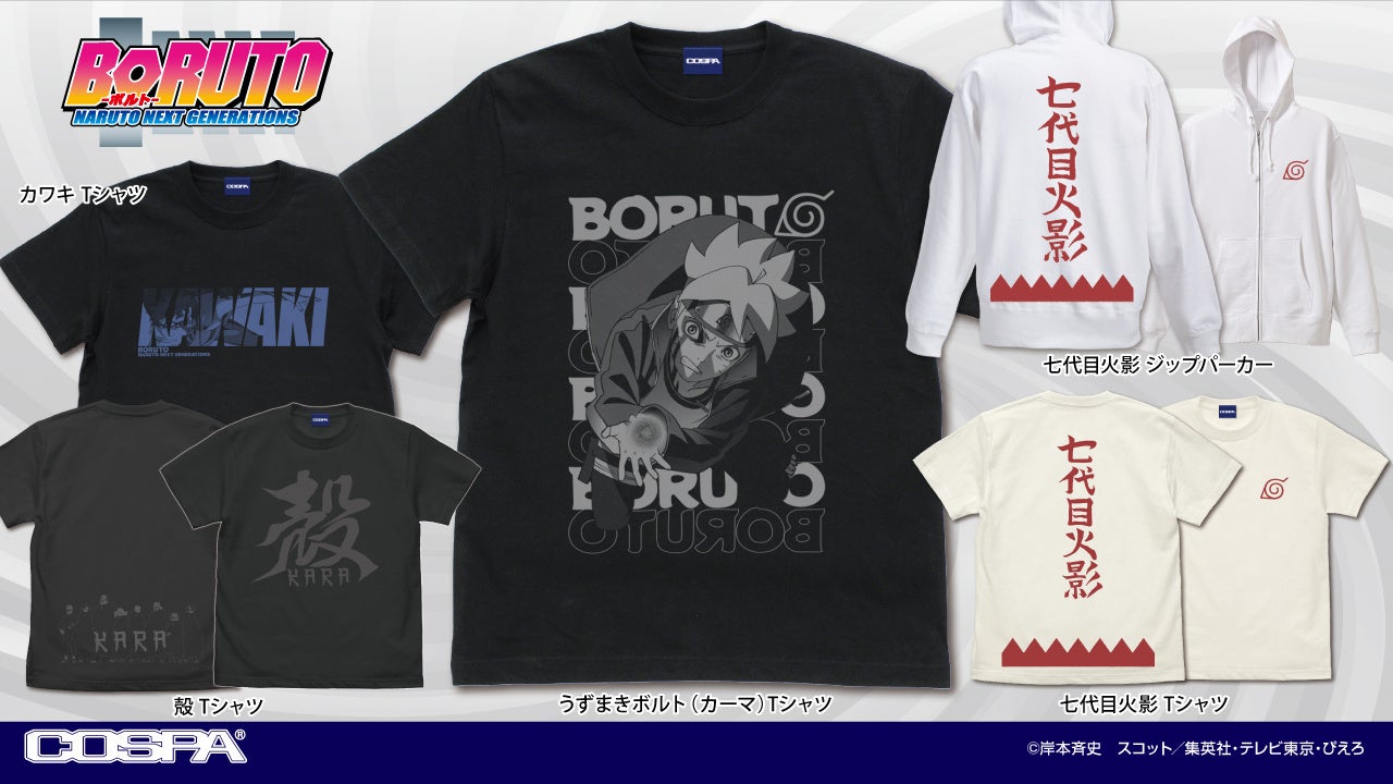 - BORUTOからは「うずまきボルト(カーマ)」「カワキ」のTシャツなどの新作アパレルが登場