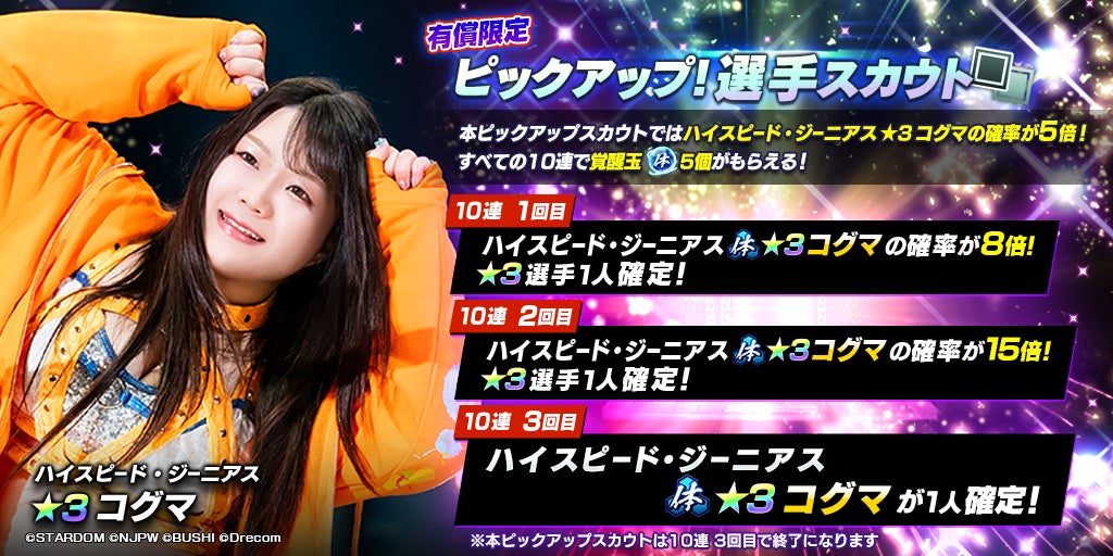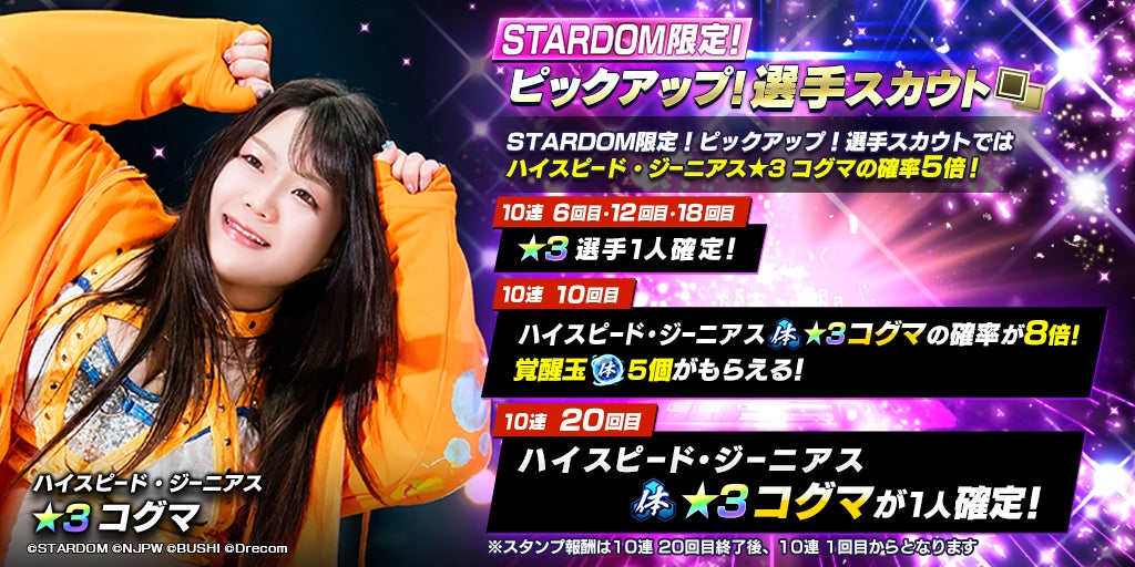 STARDOMから、新たな選手が登場しました!2023年12月13日(水)のメンテナンス終了後から、STARDOM限定のピックアップ選手スカウトが開催されています。