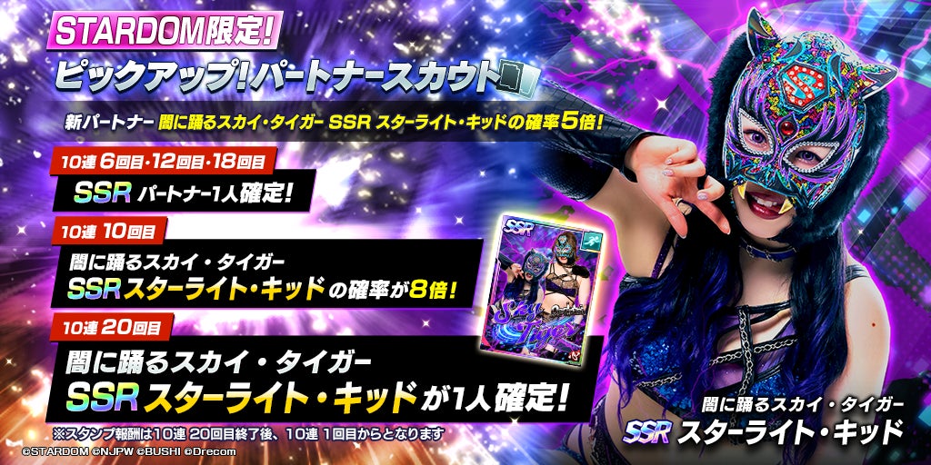 同時に、SSRスターライト・キッドも登場する「STARDOM限定!ピックアップ!パートナースカウト」も開催中です。