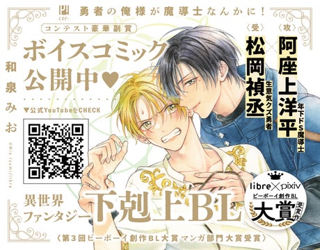 ビーボーイとpixivがコラボして開催された「ビーボーイ創作BL大賞」の第3回大賞作品の副賞として、ボイスコミックが配信されました。