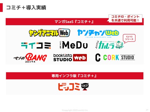 また、コミチ+の導入により、他のサイトとの共通IDやポイントを使用できるため、新作の認知にもつながると期待されています。