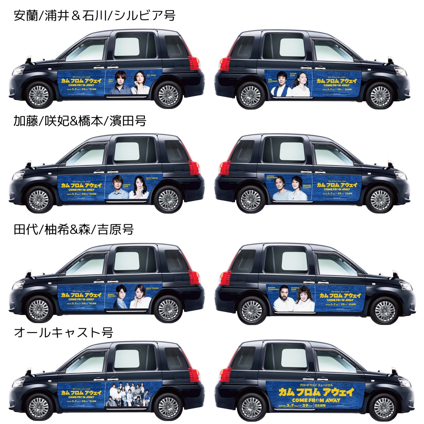 ブロードウェイミュージカル『カム フロム アウェイ』の公演期間中、日生劇場までのタクシー送迎と公演チケットのセット「カムフロムアウェイ ウェルカムライドパック」が販売されます。