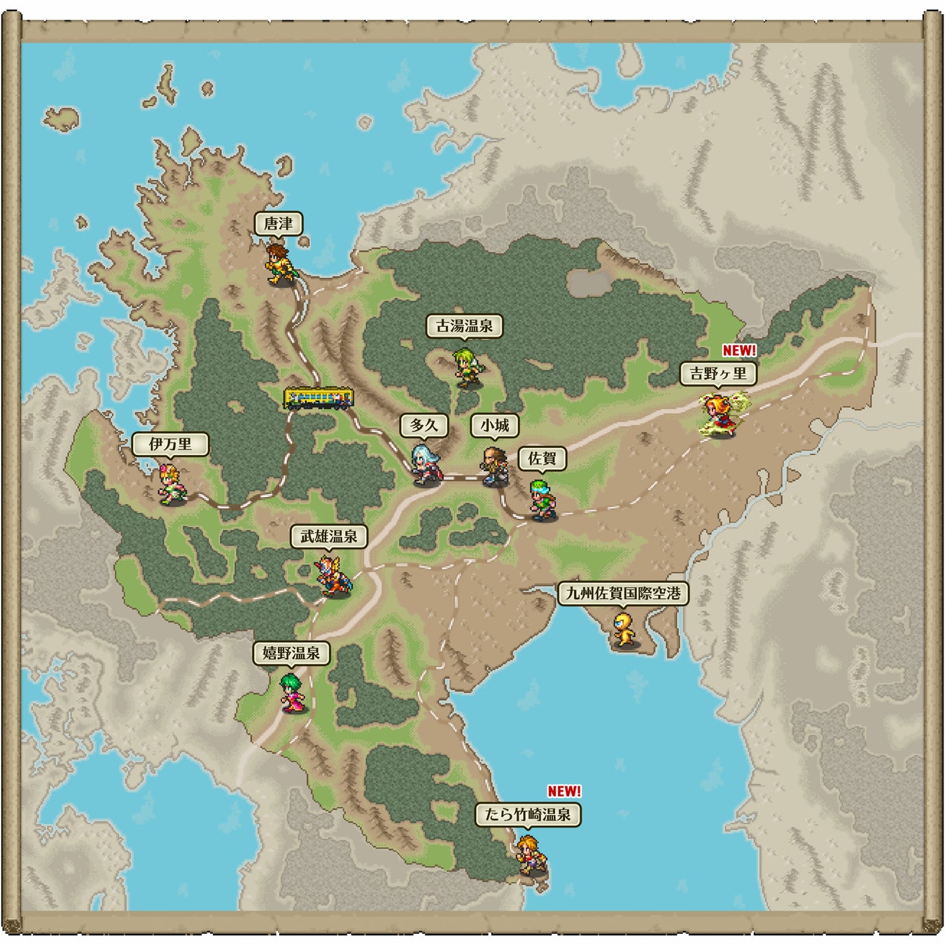 - 新たに「吉野ヶ里」「たら竹崎温泉」が追加される