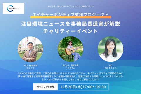 本イベントでは、ネイチャーポジティブの実現に取り組む事務局長の道家哲平氏からの講演や、IUCN-Jの活動報告、環境ニュースのランキング形式の発表が行われます。