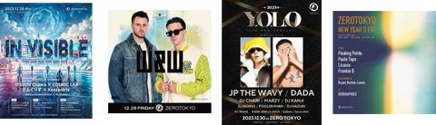 - IN VISIBLE、ALIVE IN TOKYO presents W&W、Y.O.L.O-5th Anniversary-、ZEROTOKYO NEW YEAR EVE PARTY2023→2024