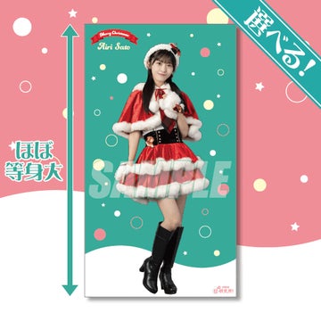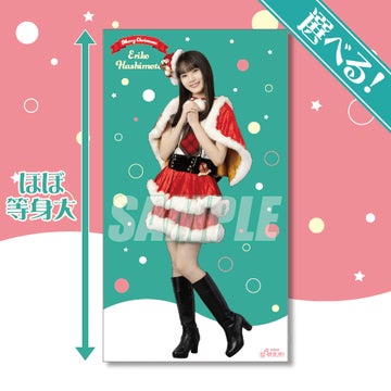 - クリスマスグッズ、オリジナルのクリアファイル、等身大布ポスター、ゆらゆらアクリルスタンド、ペンライトストラップ、缶バッジ