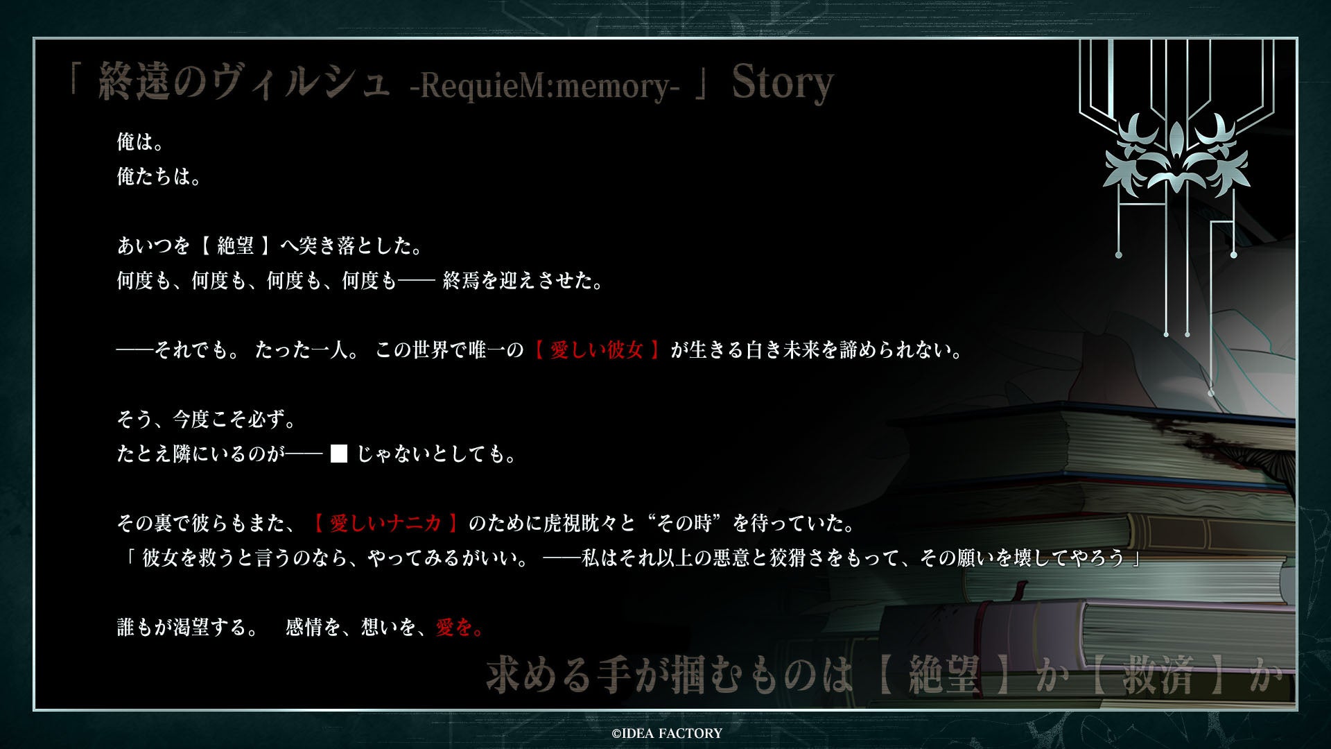 アイディアファクトリー株式会社の女性向けゲームブランド「オトメイト」は、7月2日(日)に開催する、朗読イベントシリーズ・オトメイトドラマティックシアターvol.03「終遠のヴィルシュ -RequieM:memory-」のB‘s-LOG先行抽選申込を本日より開始いたしました。