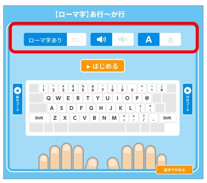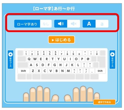 大文字と小文字を選ぶことができ、音声の有無も選択できます。