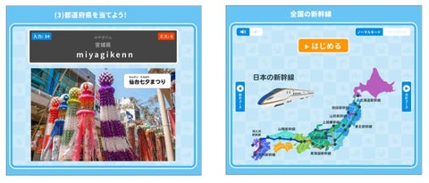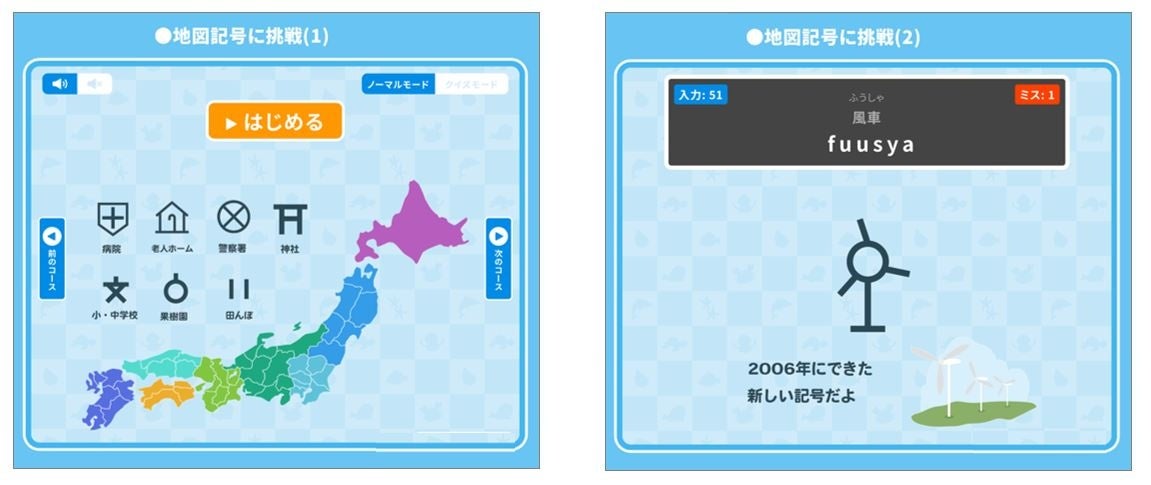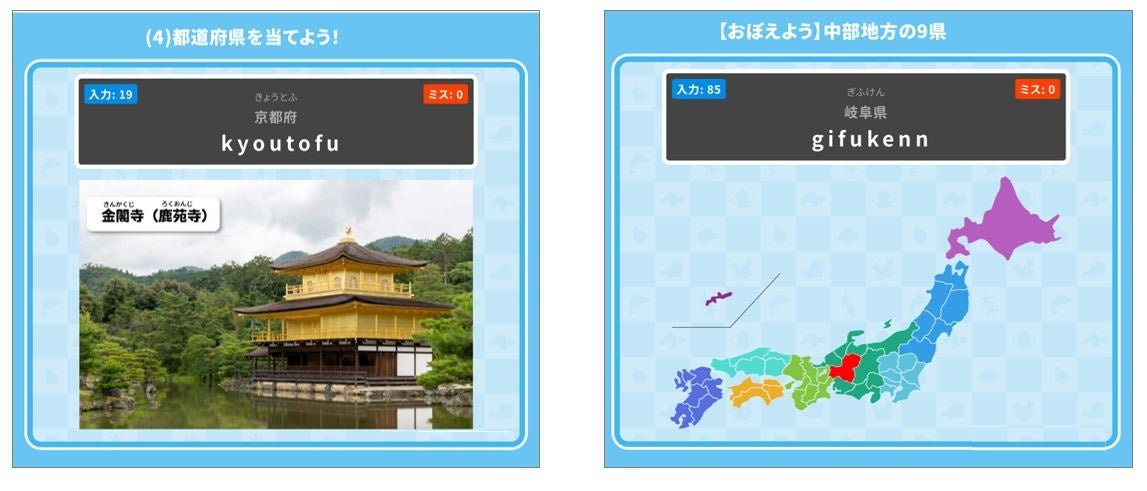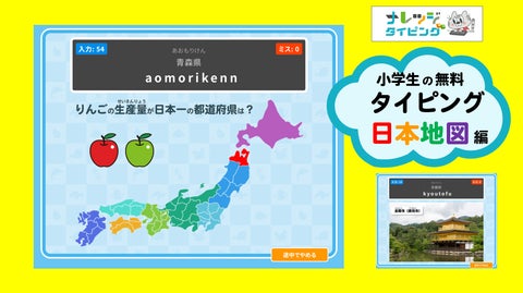 このアプリは小学校の地理学習に活用できる全20コースがあり、クイズ形式でタイピング問題が出題されます。