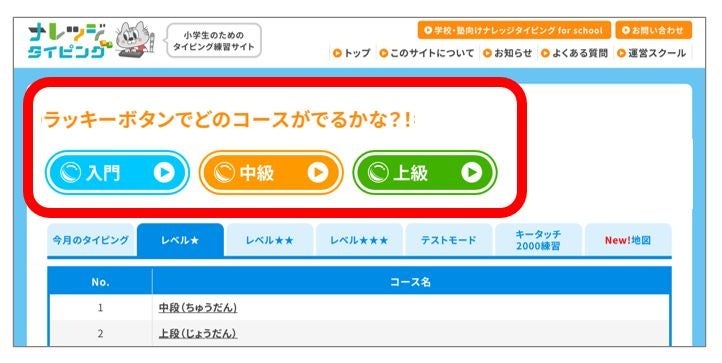 また、ガチャボタンが追加され、今日のラッキーコースが出題されます。