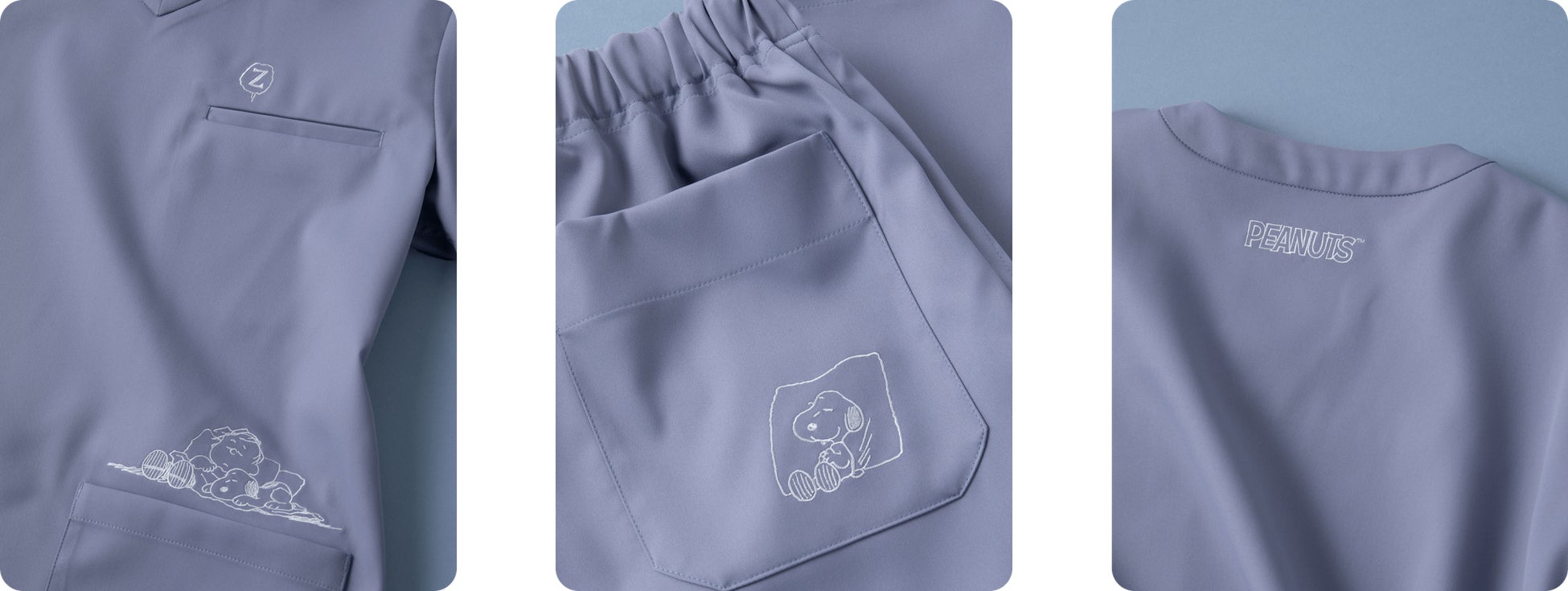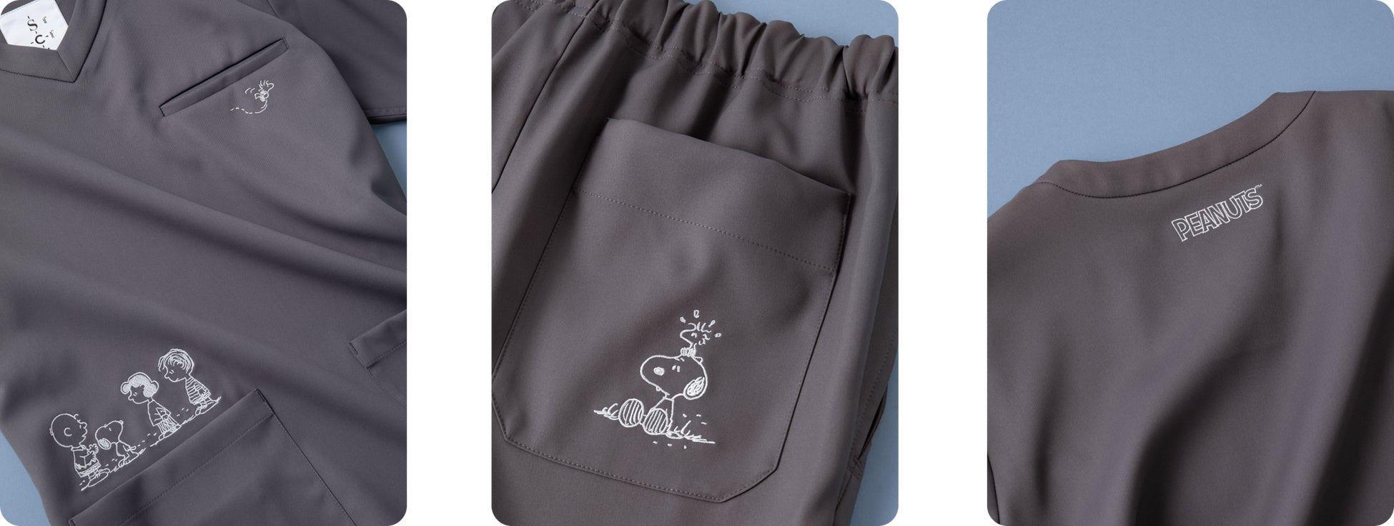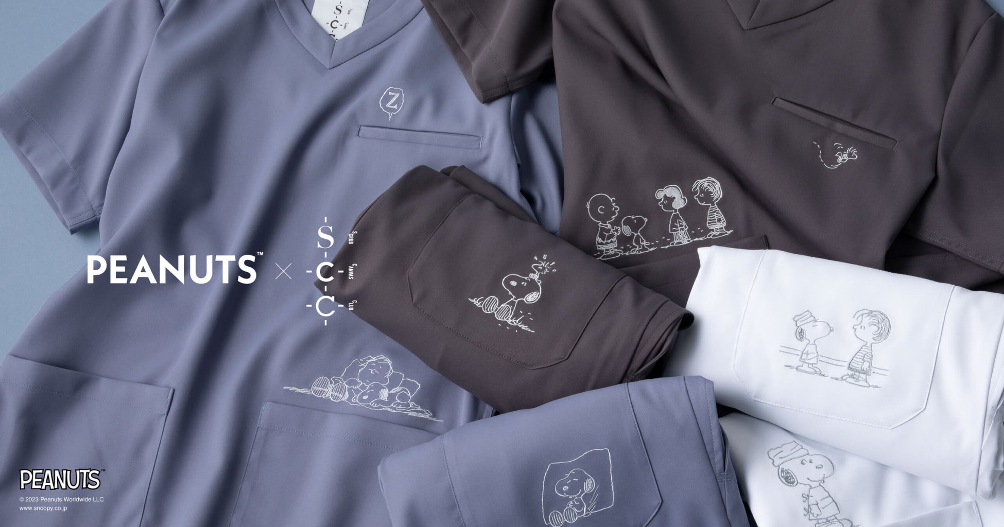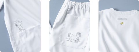 それぞれのカラーには異なるストーリーが描かれ、スクラブには「PEANUTS」のキャラクターの表情が表現されています。