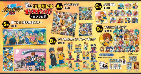 イナズマイレブン15周年を記念した「イナズマイレブンGO」オンラインくじでは、思い出のシーンを集めた商品や人気のイラストによるオリジナルグッズを展開しています。