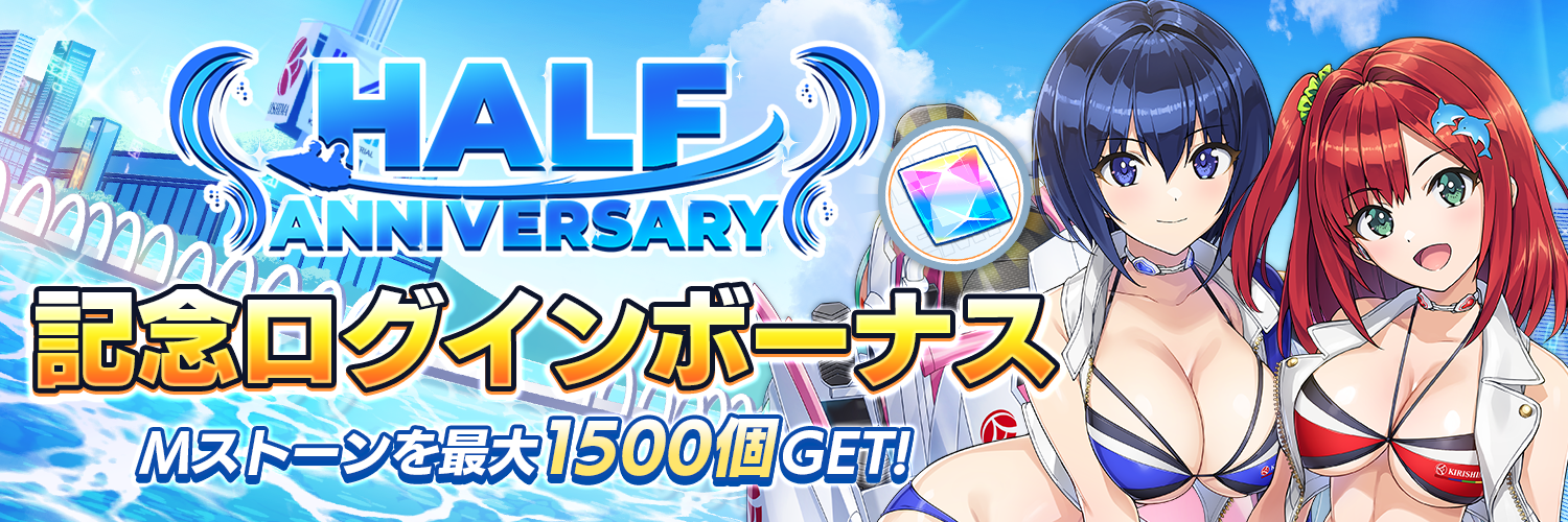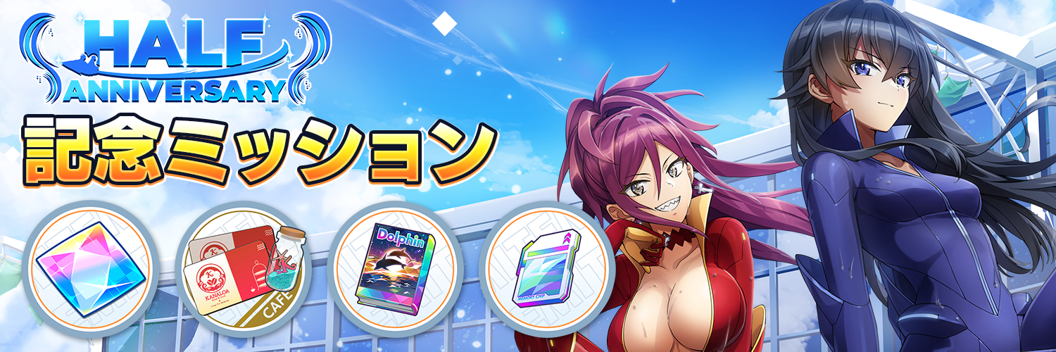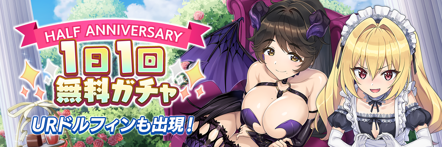 ハーフアニバーサリー記念キャンペーンも開催中で、プレイヤー全員に「HA記念URドルフィン確定ガチャチケット」がプレゼントされる。