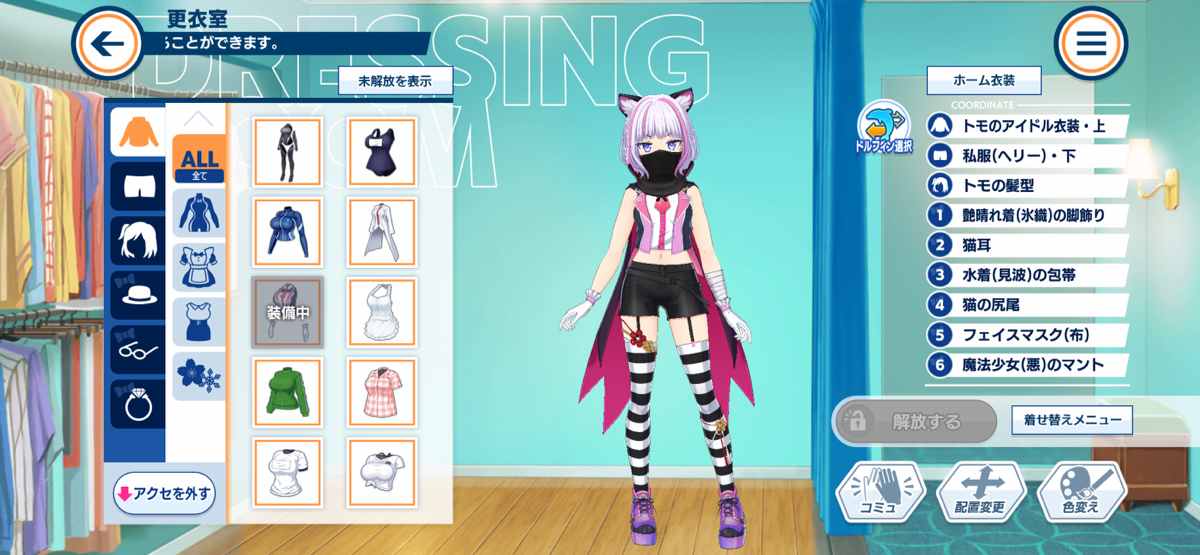 ・衣装解放で複数の衣装・アクセサリーが一括解放できるようになりました。