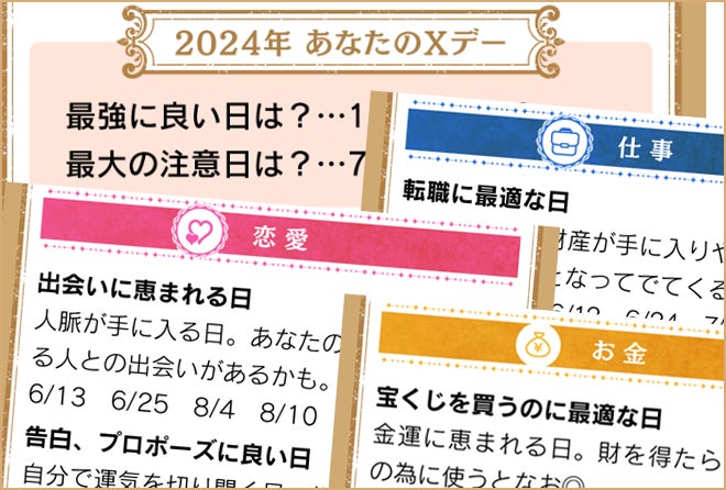 また、2024年の運気アップのためのカードセットやXデー&最適日シートも登場しています。