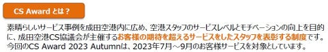 - 成田空港CS協議会主催のCS Award 2023 Autumnで受賞