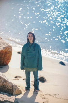 森山さんは南あわじ市の阿万海岸で古代人をイメージしながら砂浜に寝そべったり座ったりしました。