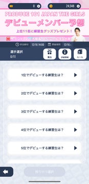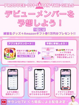 1位には練習生グッズとAmazonギフト券1万円分が、2〜3位には練習生グッズと「ツイードトレカ&チェキケース」が、4〜11位には練習生グッズと「ファンサがもらえる♡うちわ文字シール」がプレゼントされます。