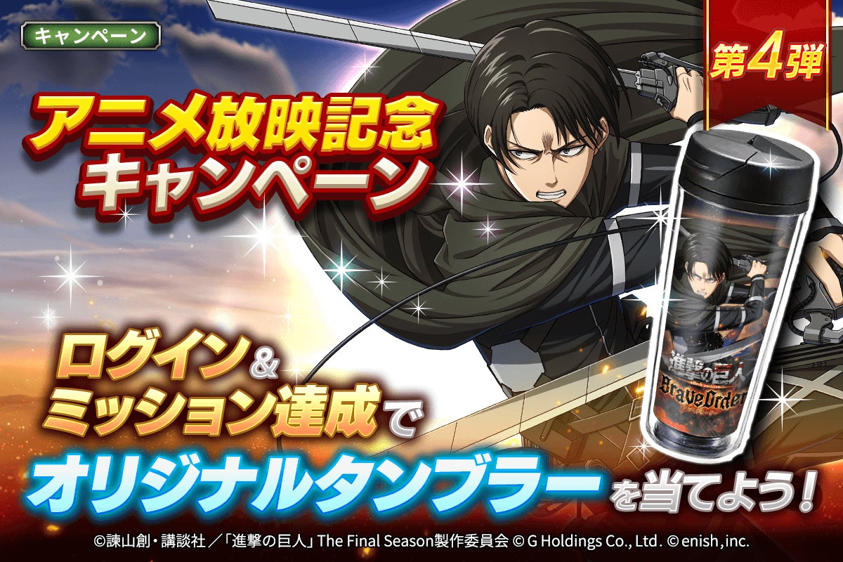 また、アニメ放映記念キャンペーン第4弾として、リヴァイのオリジナルタンブラーが当たるキャンペーンを開催中。